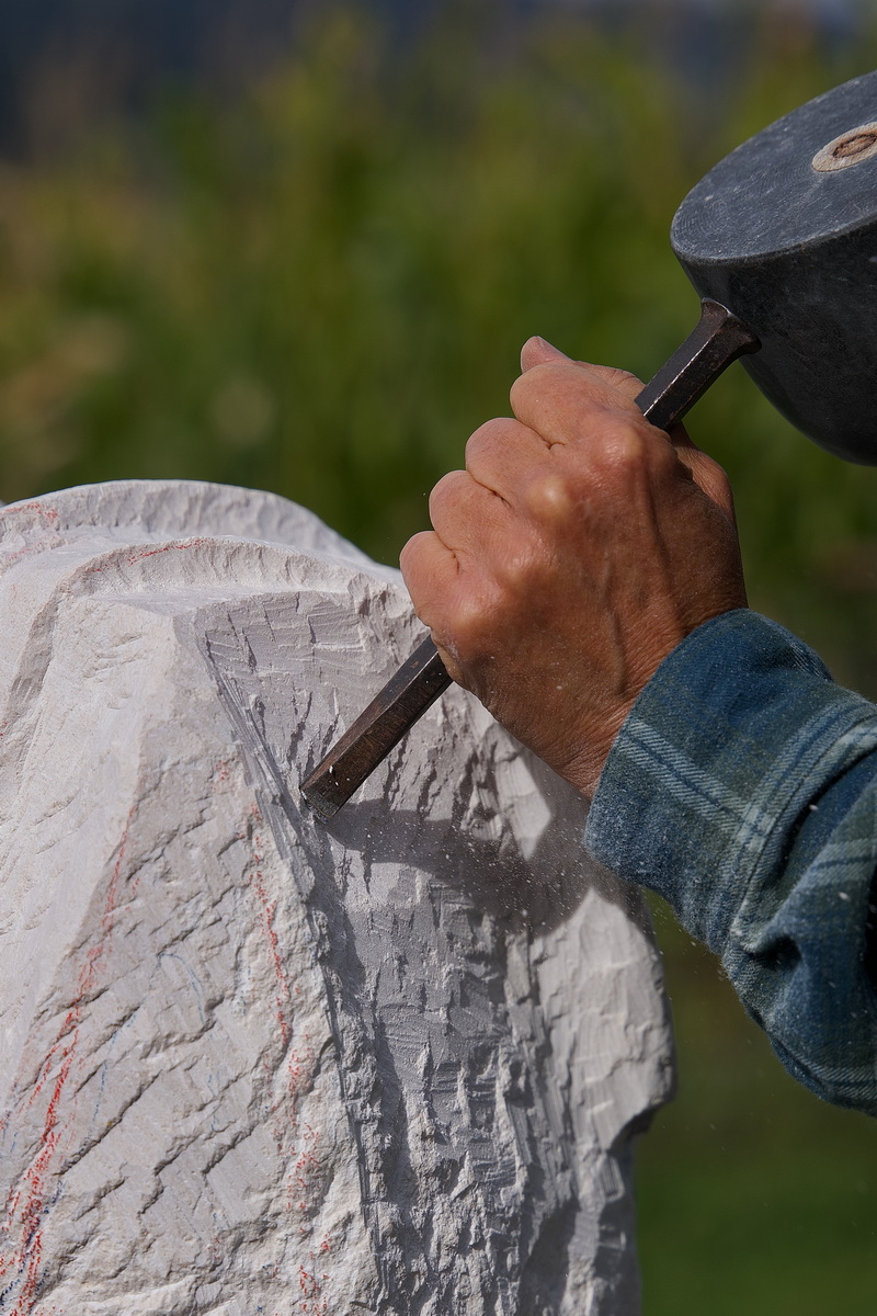 Meine Skulpturen entstehen mit einer Idee, einem Modell als Ausgangspunkt. Doch das Werk entsteht im Prozess. Wenn die Form im Stein für mich sichtbar wird, löse ich mich von der Vorlage und vertraue dem Dialog mit dem Stein.